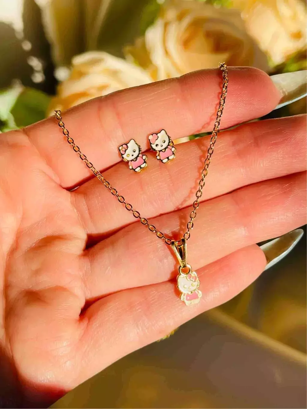 Kit Infantil Colar e Brinco (tarraxinha baby) Hello Kity: Estilo e Charme!